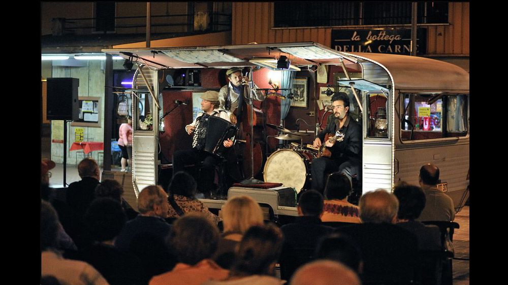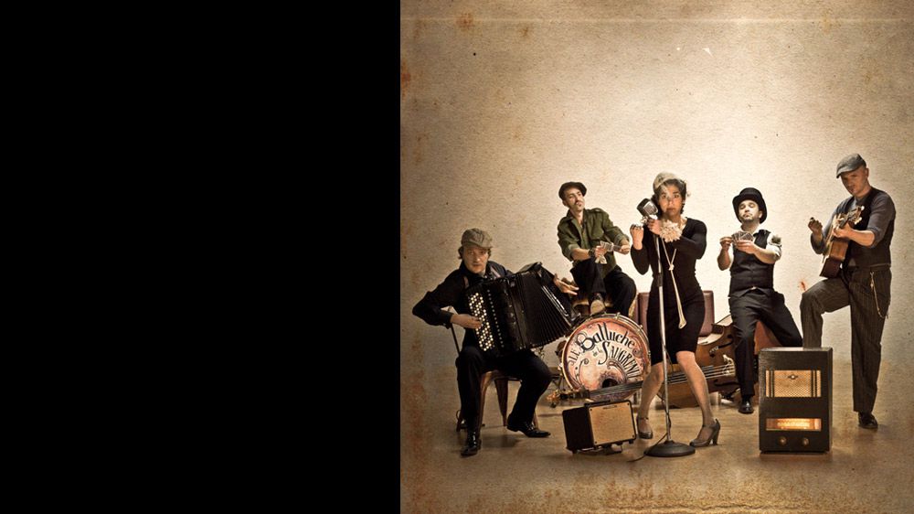 Depuis 12 ans le Balluche de la Saugrenue développe une esthétique unique, entre la tradition du swing/musette et de la chanson réaliste et les musiques actuelles . Sur scène ou en rue (caravane-scène), il vont à la rencontre d'un public toujours plus large. A l'origine, ce sont 5 musiciens aux racines musicales diverses: musette, swing, reggae, dub, rock et chanson. Leur objectif : dépoussiérer la musique du Paris cosmopolite des années 30 et y insuffler une bonne dose d'actualité! Réunit en 2006, ils rassemblent compositions et reprises, aux sonorités perdues du musette de l'entre deux guerre, pour créer un spectacle musical dynamique et poétique sous la forme d'un bal « saugrenue ». Ils sillonnent alors festivals et villes en France et en Europe ,à bord de leur caravane-scène et également sur les plateaux de festivals et enchaînent chansons, reggae-valse, steppin'mazurka et autres swings-dancefloor, transposant ainsi l'atmosphère des caboulots de années 30 à notre époque. Repérés à l'étranger et identifiés comme artistes world, les membres du Balluche produisent alors leur « frenchy music second line » sur scène, oscillant entre hommage et rupture avec la tradition, à travers un spectacle unique, sous forme de concert-bal-cabaret où, du tragique au burlesque, l'émotion se mêle à une irrésistible envie de danser. Un tournant est opéré en 2013, avec une nouvelle équipe, un nouvel album (Train Fantasque) et un nouveau spectacle, des instrumentations plus actuelles, et un espace plus important laissé aux textes et à la mise en scène des chansons. Aujourd'hui le groupe joue 2 spectacles distincts : Balluche Soundsytem, un spectacle entre les sonorités actuelles et le style des années 30, et Le Petit Bal Perdu, un véritable Bal parisien à l'ancienne.